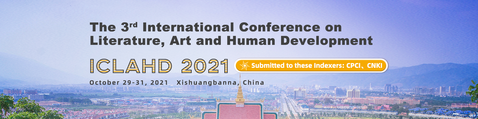 The 3rd International Conference on Literature, Art and Human Development (ICLAHD 2021) will be held on October 29-31, 2021 in Xishuangbanna, China. ICLAHD 2021 is to bring together innovative academics and industrial experts in the field of Literature, Art and Human Development research to a common forum. The primary goal of the conference is to promote research and developmental activities in Literature, Art and Human Development research and another goal is to promote scientific information interchange between researchers, developers, engineers, students, and practitioners working all around the world. The conference will be held every year to make it an ideal platform for people to share views and experiences in Literature, Art and Human Development research and related areas.